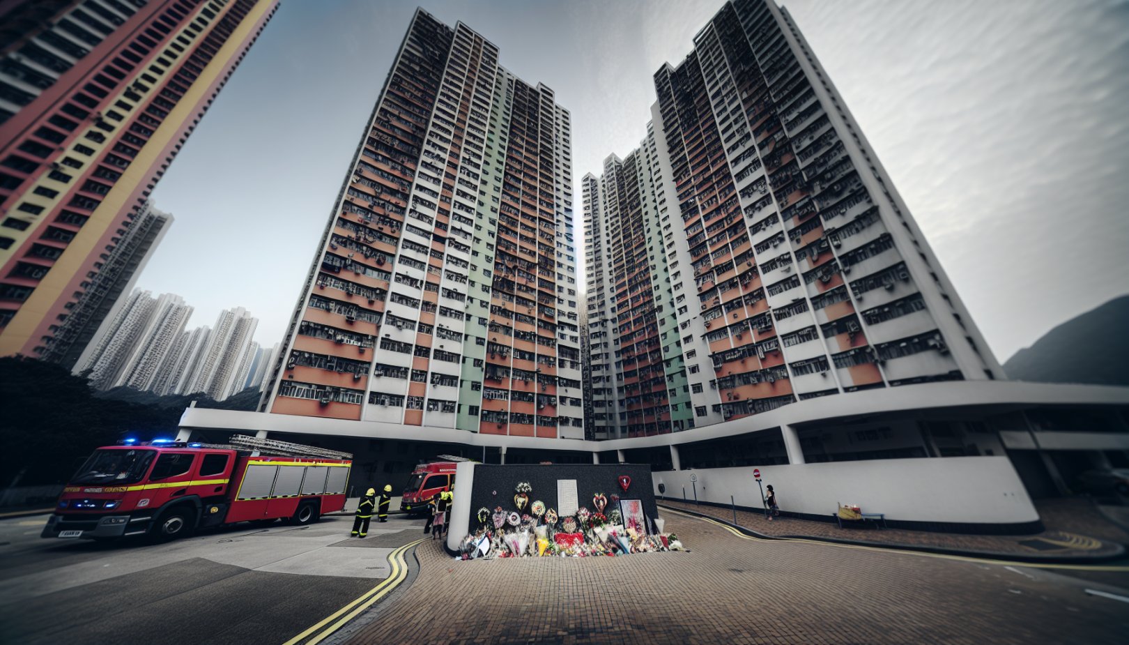 Tre dager med nasjonal sorg startet lørdag 29. november. Tusenvis har lagt ned blomster og håndskrevne hilsener ved Wang Fuk Court, og køene har vært opp mot 2 kilometer.