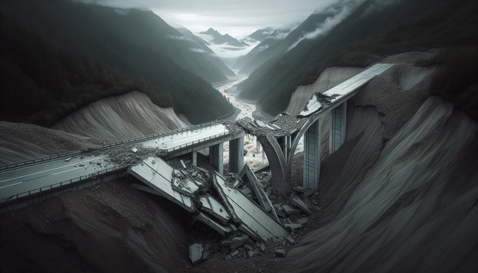 Ifølge lokale tjenestemenn skyldtes sammenbruddet forverrede fjellforhold som utløste jordskred. Skredene rammet både tilførselsbroen og veibanen, noe som til slutt fikk hele konstruksjonen til å gi etter.